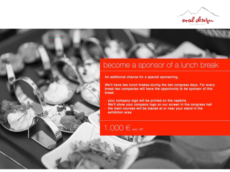 We’ll have two lunch brakes during the two congress days. For every break two companies will have the opportunity to be sponsor of this break.