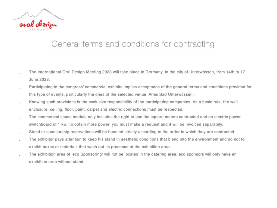 • Participating in the congress’ commercial exhibits implies acceptance of the general terms and conditions provided for this type