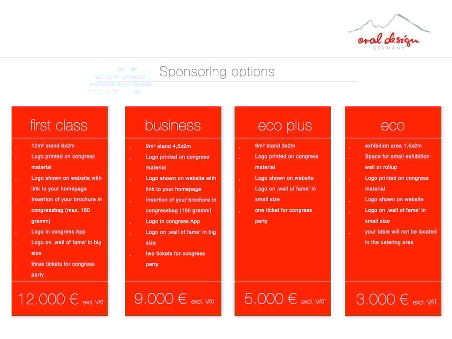 For detailed information about these add ons and the costs please have a look at our sponsoring contract.