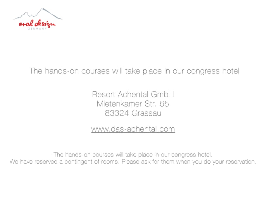 The hands-on courses will take place in our congress hotel