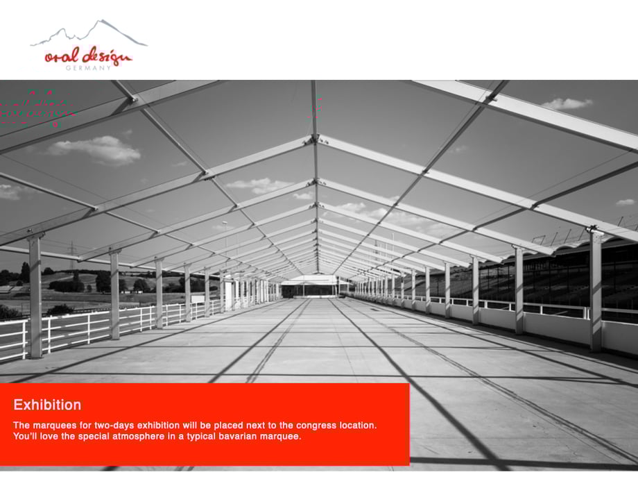 The marquees for two-days exhibition will be placed next to the congress location. You’ll love the special atmosphere in a typical bavarian marquee
